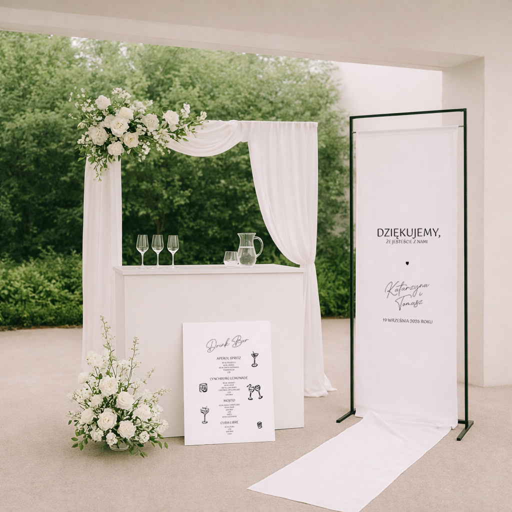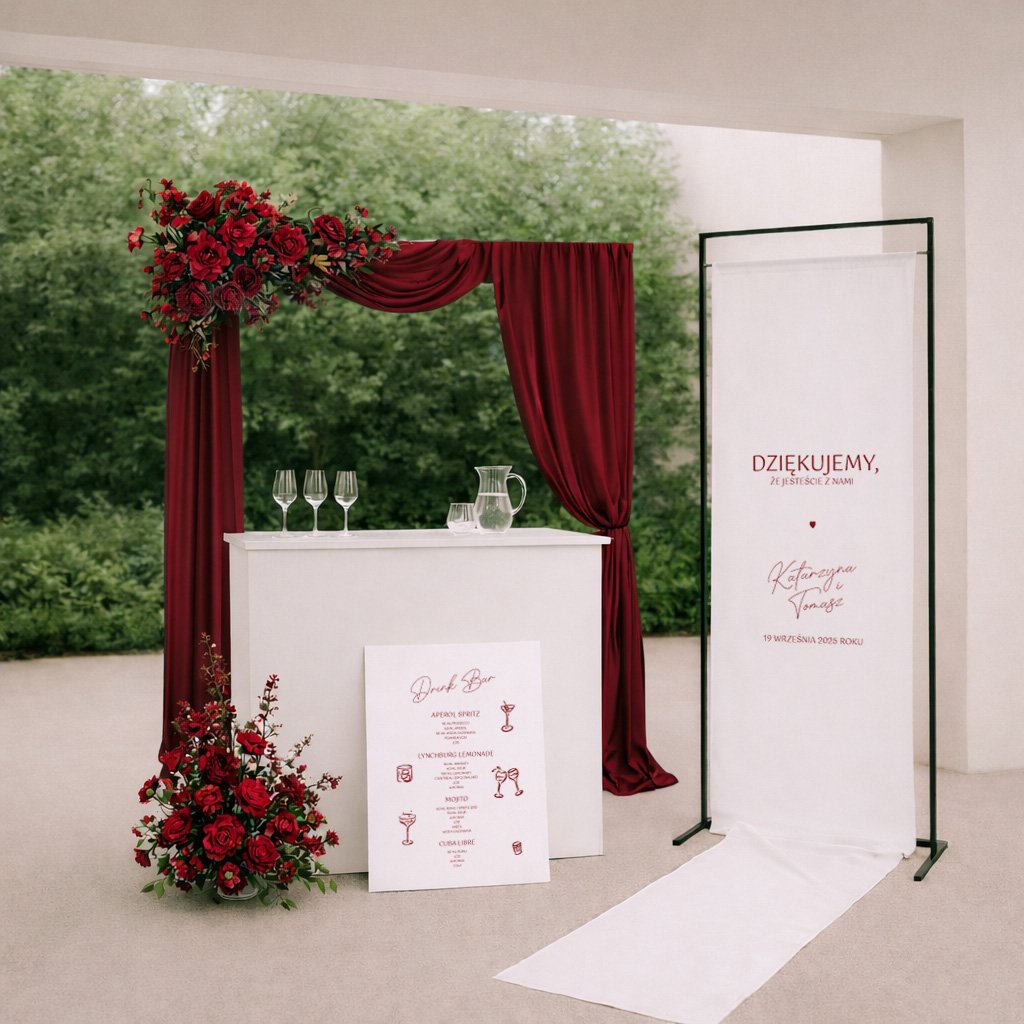 - spójna oprawa wizualna stołów i całej uroczystości weselnej