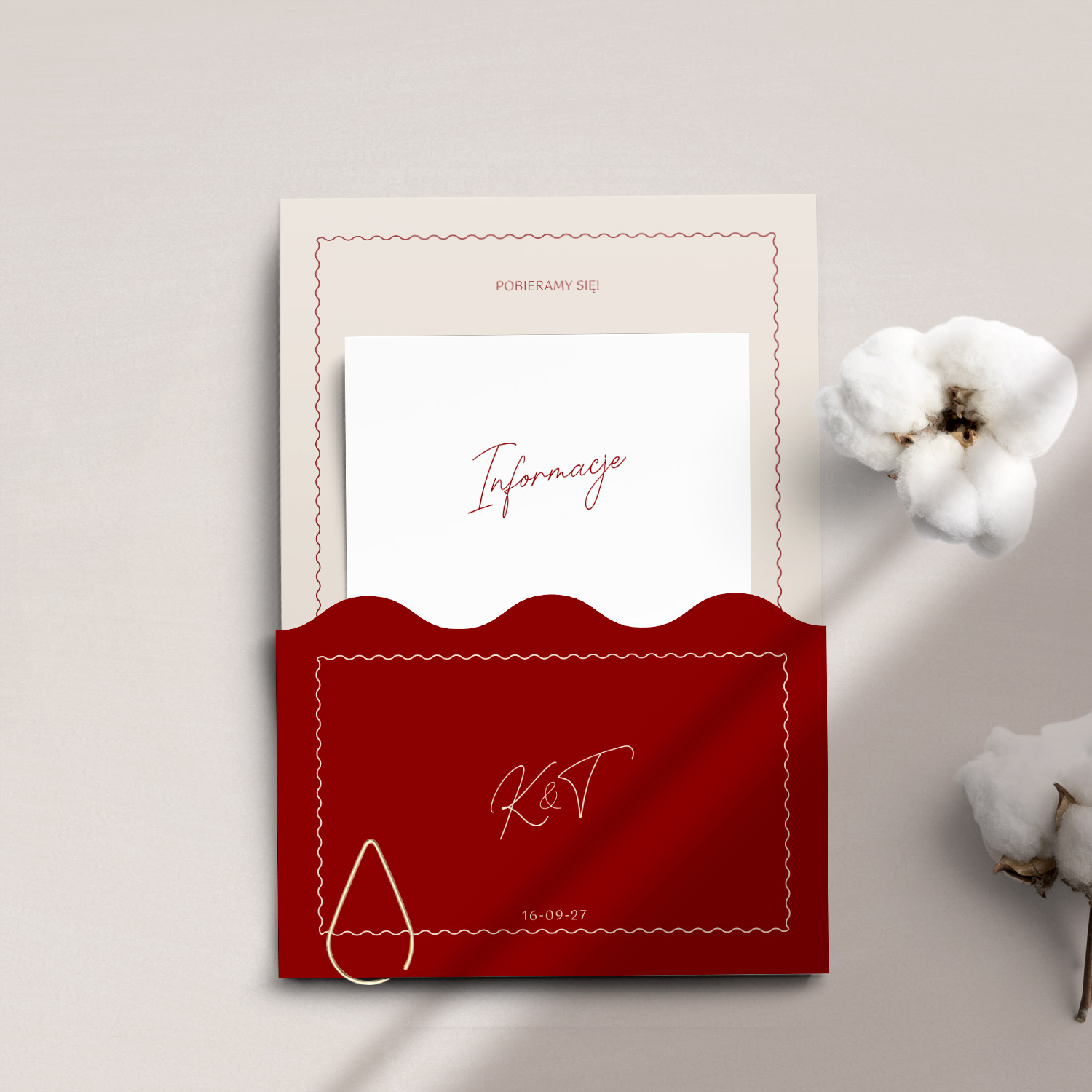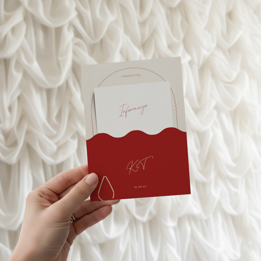 - Rozmiar w folderze: w przypadku zamówienia dodatkowego folderu, karta zaproszenia może być trochę mniejsza, tak by dopasować ją do folderu.