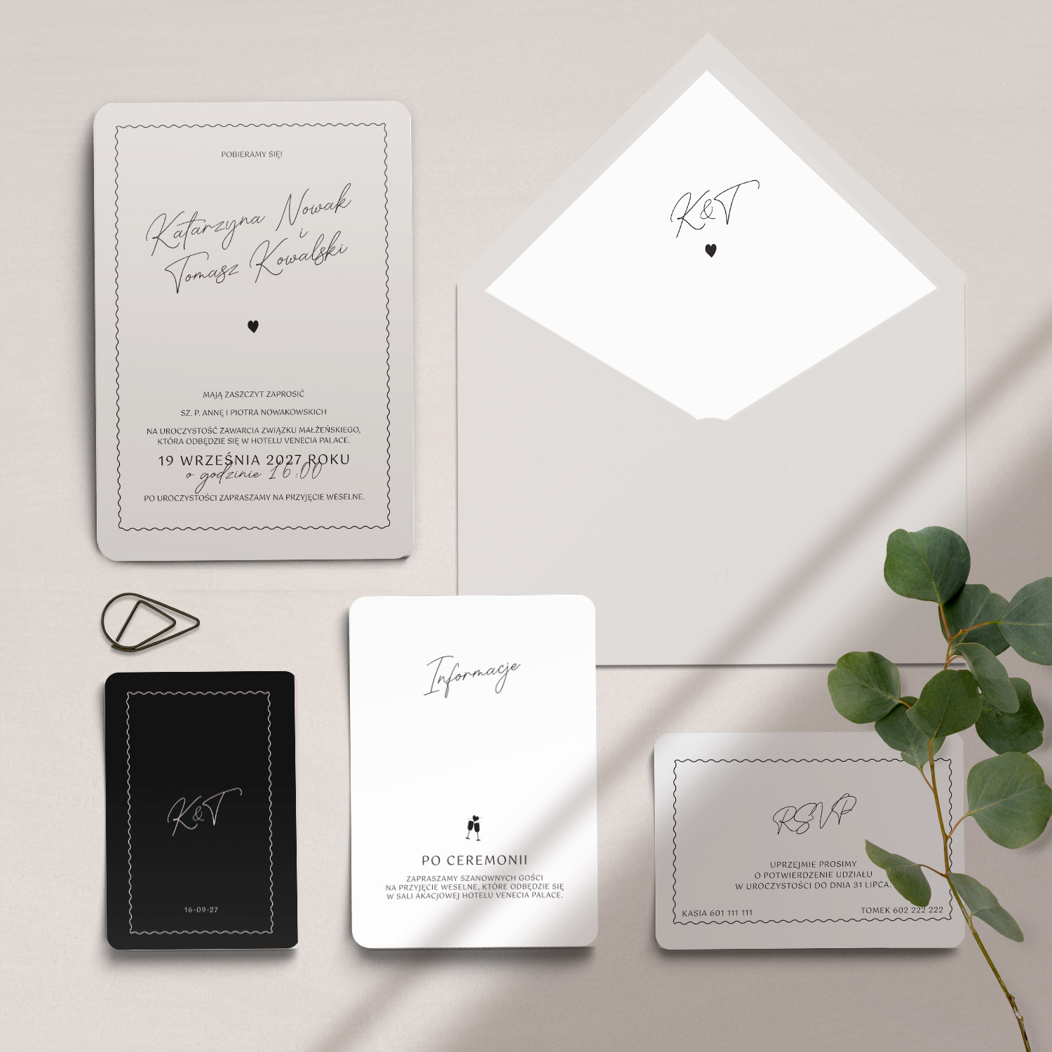 - Styl: nowoczesne zaproszenia ślubne, minimalistyczne zaproszenia ślubne