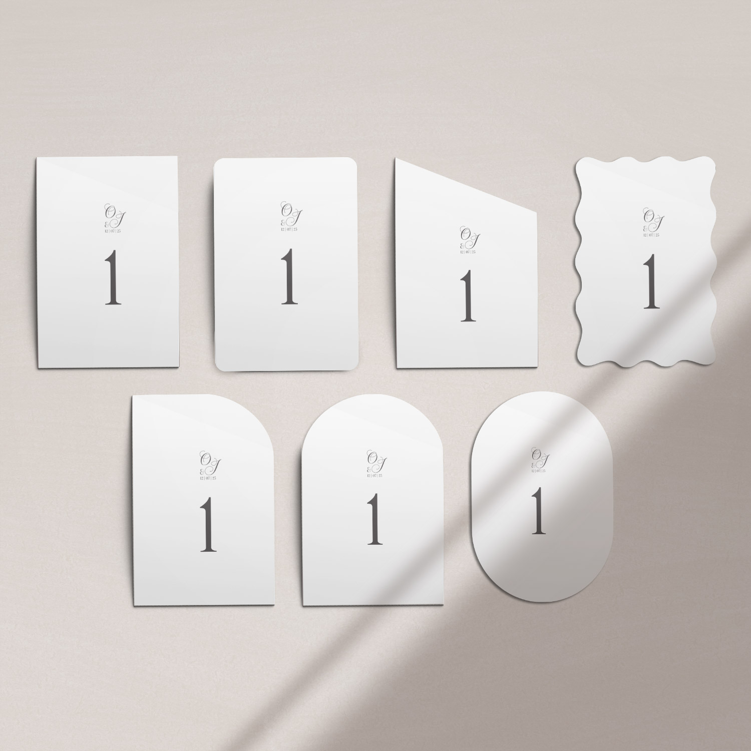 Numery stołów z kolekcji Wave to karty z numerami w nowoczesnym, eleganckim stylu.