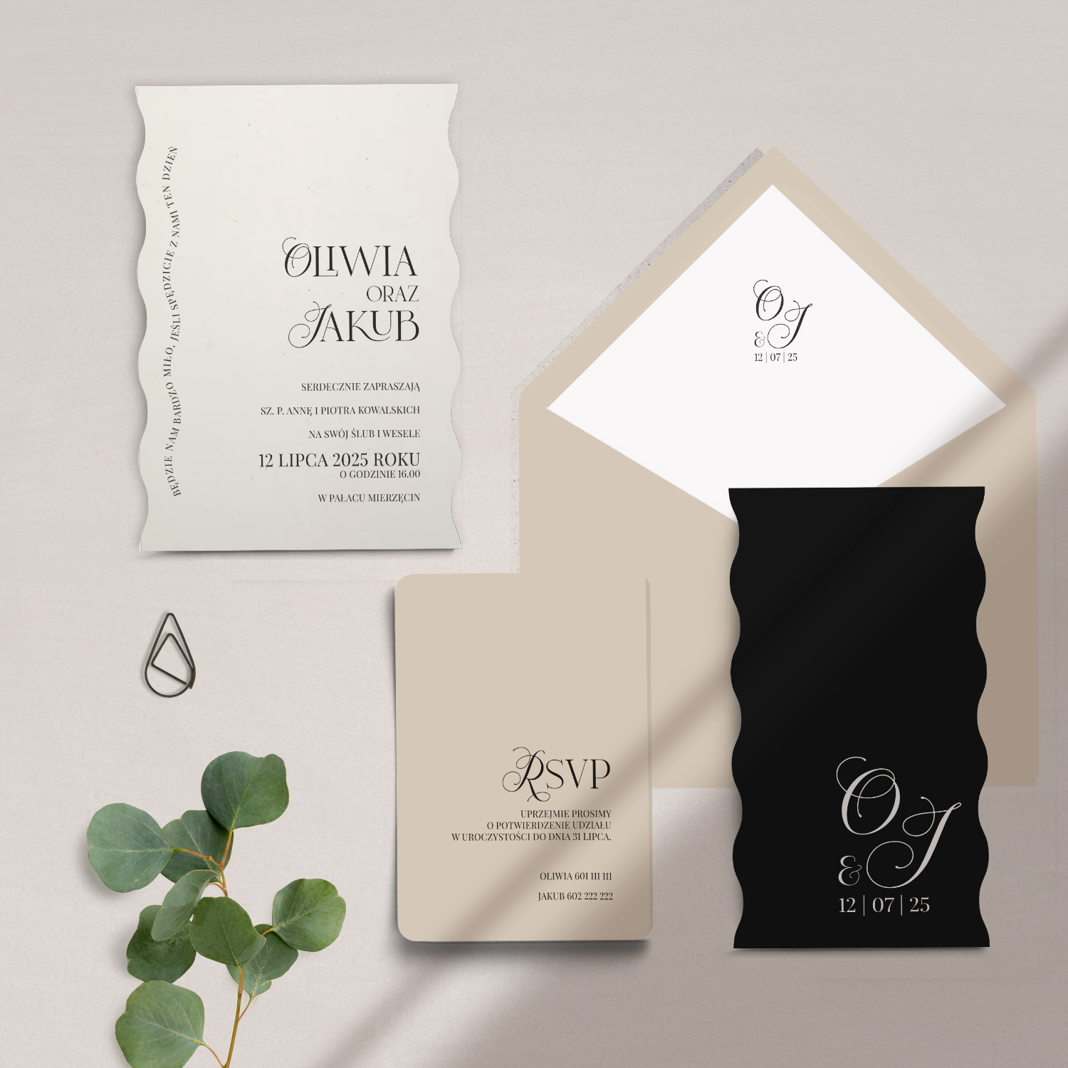 - Styl: nowoczesne zaproszenia ślubne, minimalistyczne zaproszenia ślubne, pofalowane zaproszenia ślubne